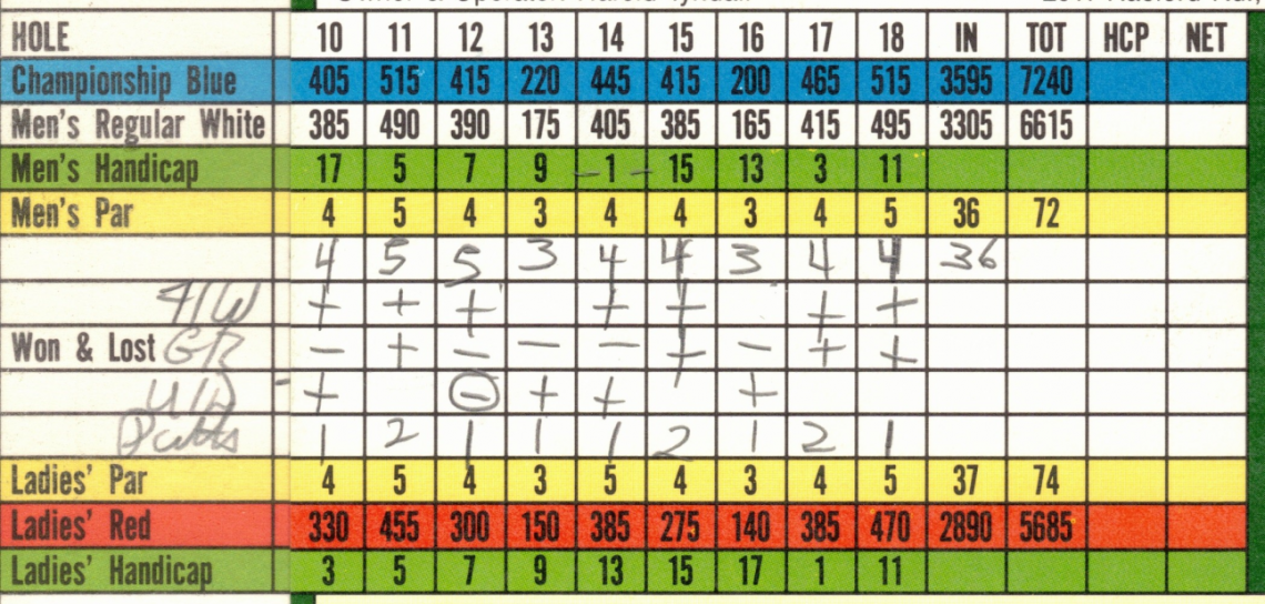 When I first started getting serious about beating “Old Man Par”, the way I was taught to monitor my game was a system of “+, and – “ marks, and never write a score for a hole down until the round was over. Sounds nuts, how would one know what you shot, right? The goal was to train you to focus on the shot at hand and not where you were related to par.